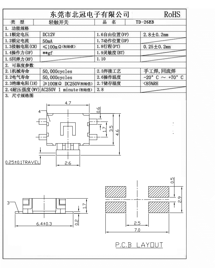 產(chǎn)品名稱:TD-26EB輕觸開關(guān)