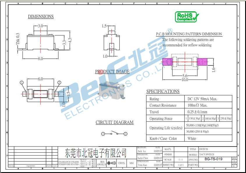 3.Lnsulation Resistance: ≥100mΩ DC250V