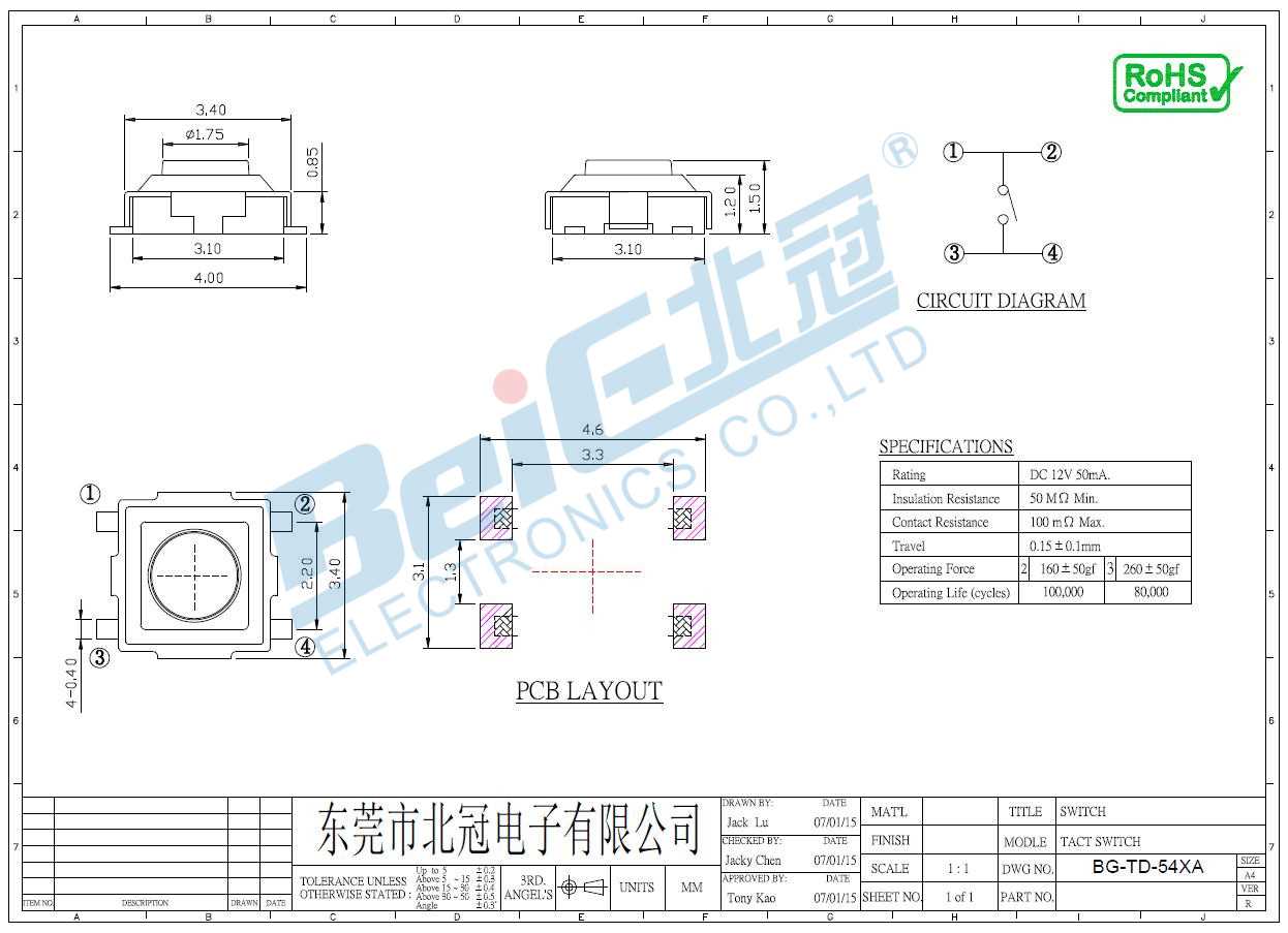 3.Lnsulation Resistance: ≥100mΩ DC250V