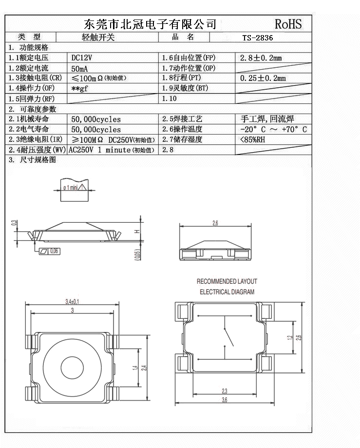 3.Lnsulation Resistance: ≥100mΩ DC250V