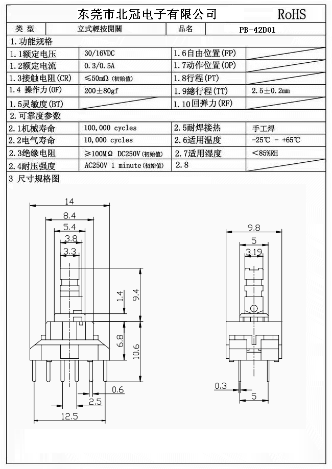產品名稱:PB-42D01按鍵開關