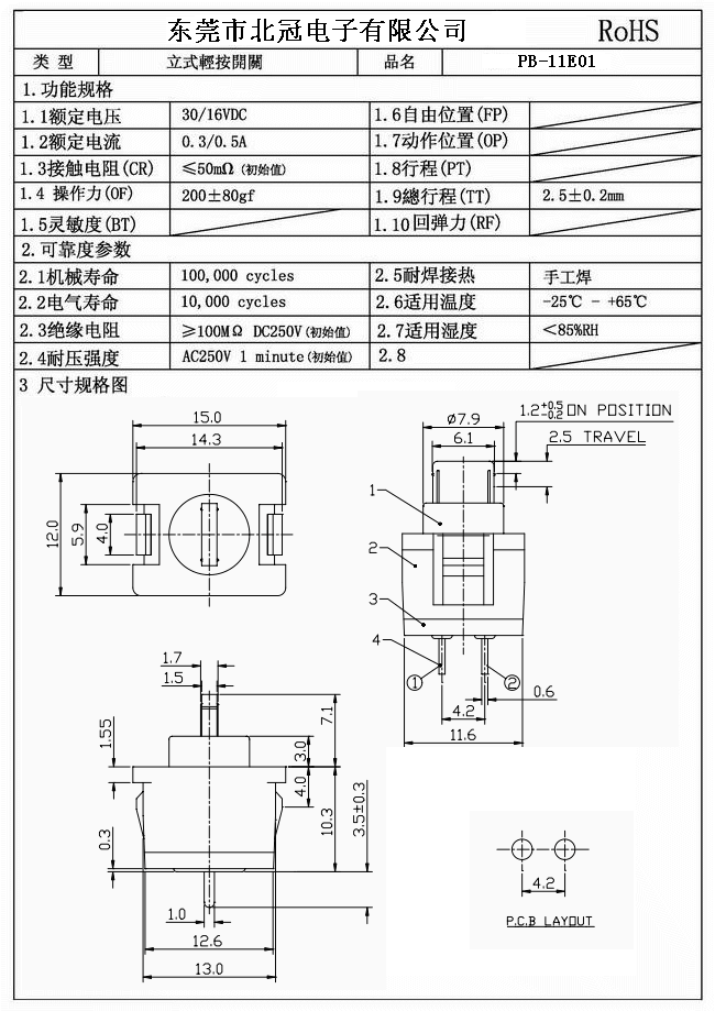 產品名稱:PB-11E01按鍵開關