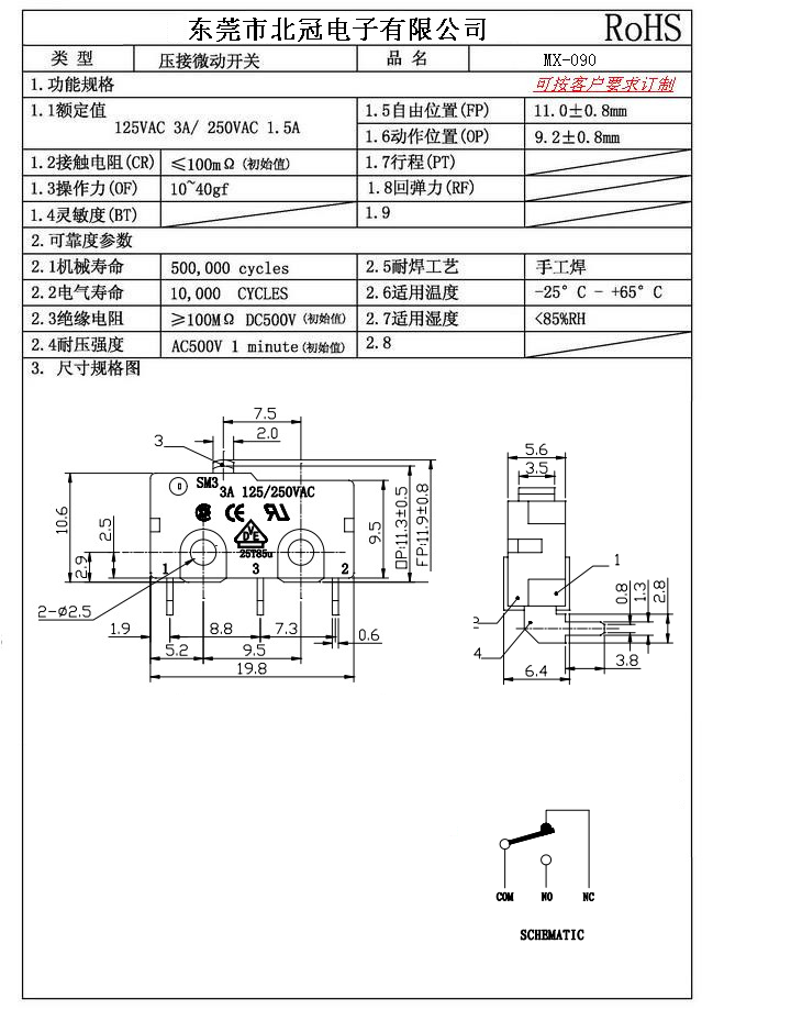 6.Mechanical Life: 100,000Cycles