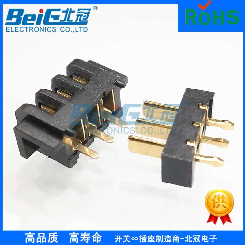 產品名稱:2.5間距3PIN電池座公座 180度直插刀片式電池連接器