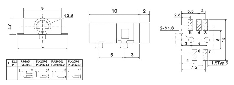 產(chǎn)品名稱:PJ-205 品名:2.5耳機(jī)插座 |