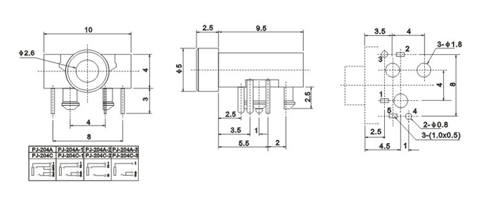 品名:2.5耳機插座 耳機插座技術參數: 1.額定負荷:0.5A 30V DC 2.按觸電阻:100 mΩ max. 3.使用溫度:-20℃~70℃ 4.插拔力:3-20N 5.使用壽命:5,000cycles 耳機插座主要組成部件: 1.塑膠底座 2.磷銅或鈹銅簧片