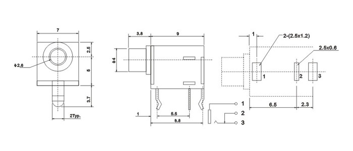 產(chǎn)品名稱:PJ-206 品名:2.5耳機插座 |