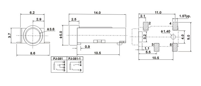 品名:3.5耳機插座 耳機插座技術參數: 1.額定負荷:0.5A 30V DC 2.按觸電阻:100 mΩ max. 3.使用溫度:-20℃~70℃ 4.插拔力:3-20N 5.使用壽命:5,000cycles 耳機插座主要組成部件: 1.塑膠底座 2.磷銅或鈹銅簧片