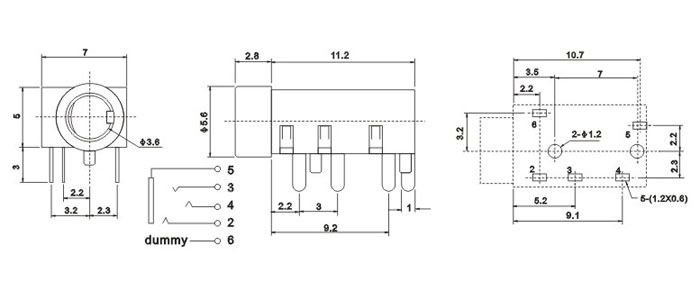 品名:3.5耳機插座 耳機插座技術參數: 1.額定負荷:0.5A 30V DC 2.按觸電阻:100 mΩ max. 3.使用溫度:-20℃~70℃ 4.插拔力:3-20N 5.使用壽命:5,000cycles 耳機插座主要組成部件: 1.塑膠底座 2.磷銅或鈹銅簧片