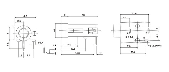 品名:3.5耳機插座 耳機插座技術參數: 1.額定負荷:0.5A 30V DC 2.按觸電阻:100 mΩ max. 3.使用溫度:-20℃~70℃ 4.插拔力:3-20N 5.使用壽命:5,000cycles 耳機插座主要組成部件: 1.塑膠底座 2.磷銅或鈹銅簧片