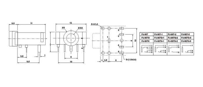 品名:3.5耳機插座 耳機插座技術參數: 1.額定負荷:0.5A 30V DC 2.按觸電阻:100 mΩ max. 3.使用溫度:-20℃~70℃ 4.插拔力:3-20N 5.使用壽命:5,000cycles 耳機插座主要組成部件: 1.塑膠底座 2.磷銅或鈹銅簧片