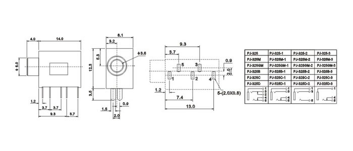 產(chǎn)品名稱:PJ-325 品名:3.5耳機(jī)插座 |