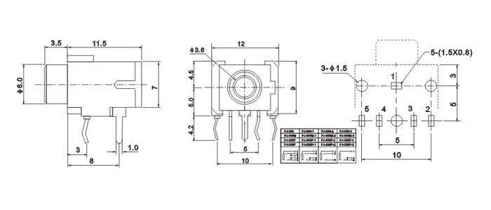 產(chǎn)品名稱:PJ-306M 品名:3.5耳機(jī)插座 |